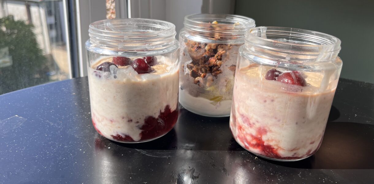 Makes 2 servings (fills two 500ml jars). These breakfast jars will keep in the fridge for 3–4 days. I buy the jars from here