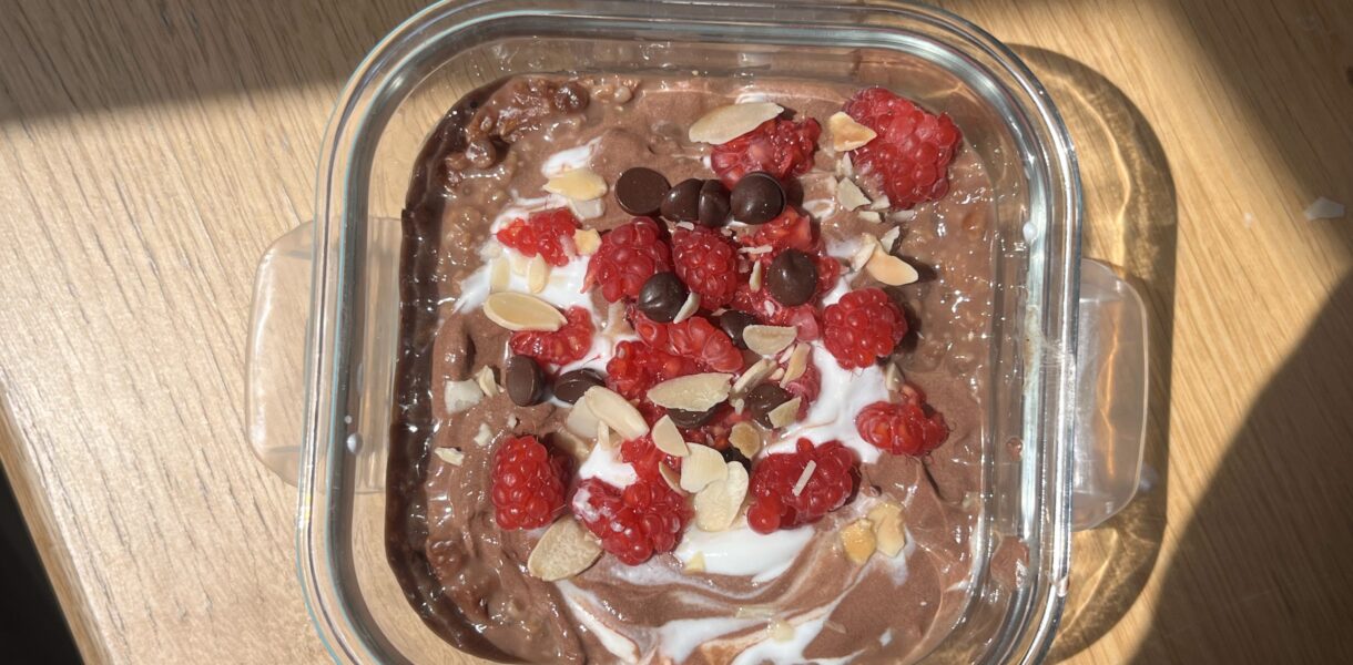 - Keep the topping separate if storing for later. When serving, dollop the chocolate yoghurt over the oats.